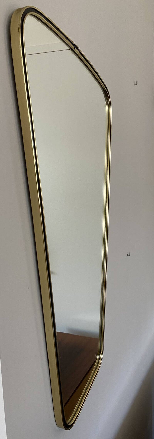 Grote asymmetrische messing spiegel jaren '50-'60