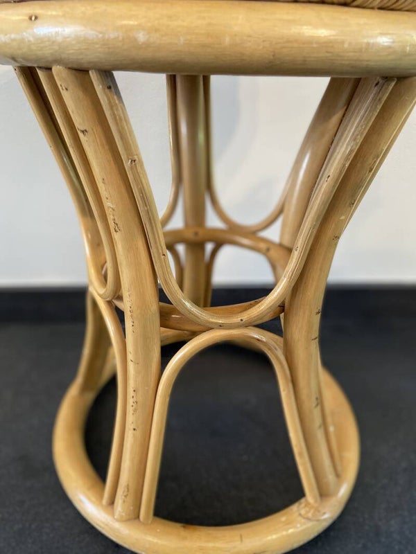 Deze kruk/plantentafel van manou en pitriet is een sfeermaker in je interieur! Met een plant erop fleur je elk kaal hoekje op en als je extra zitruimte nodig hebt gebruik je hem als kruk. De staat van de kruk is stevig en goed; geen loszittende onderdelen e.d.