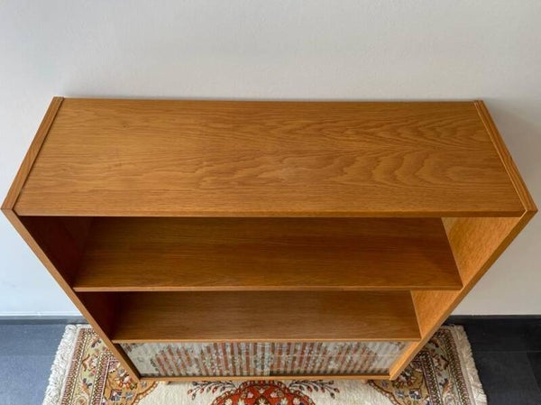 Hoge Vintage Deense boeken-/vitrinekast van eikenfineer