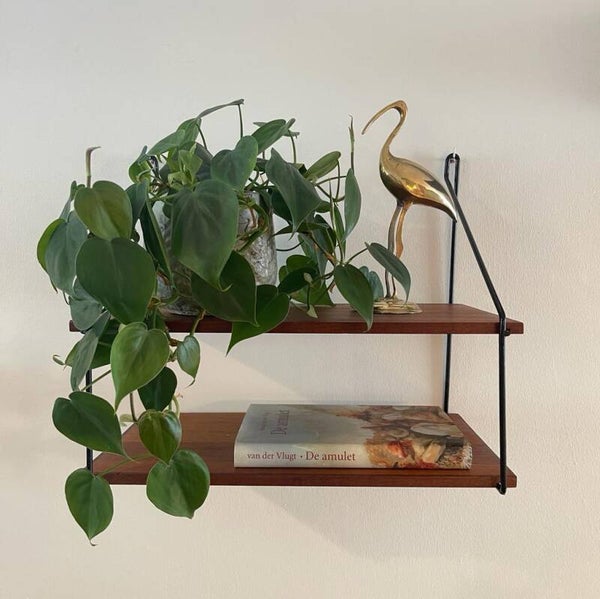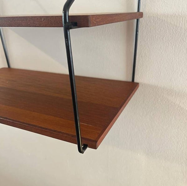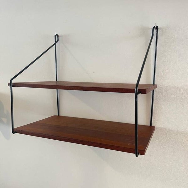 Prachtig vintage wandrek van WHB. Een strak zwart draadstalen frame met 2 zeer mooi afgewerkte houten planken in een warme kleur. Qua vormgeving en uitvoering al een aanwinst in je interieur maar ook nog eens superpraktisch in de woonkamer, slaapkamer, hal, kinderkamer, keuken, badkamer of toilet. Minimale gebruikssporen.