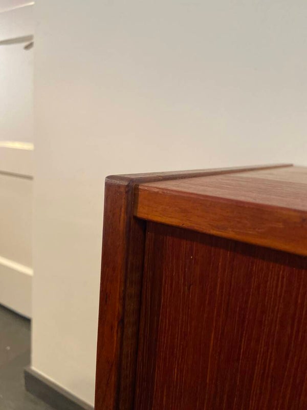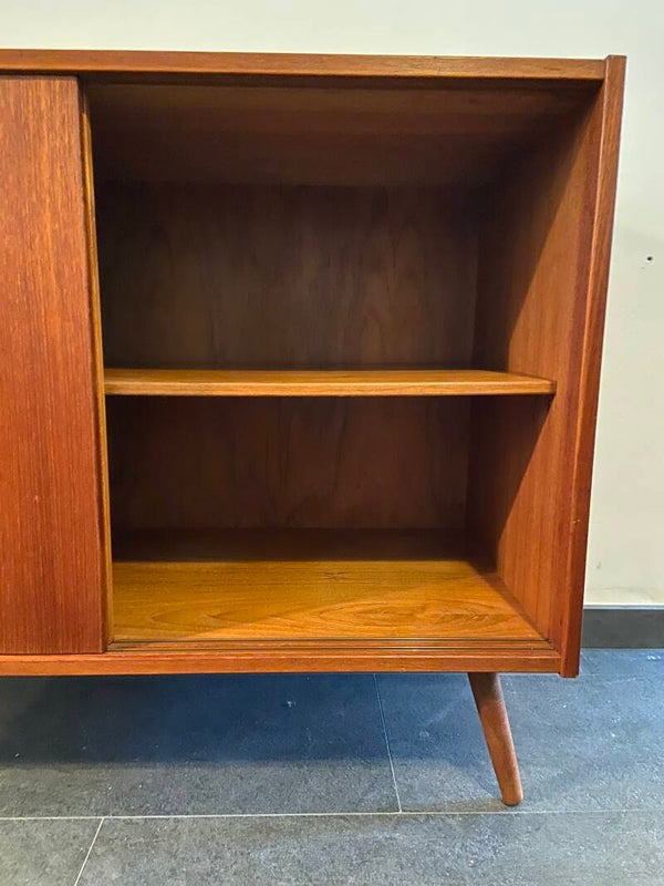 Vintage Deens teak wandkastje met schuifdeuren