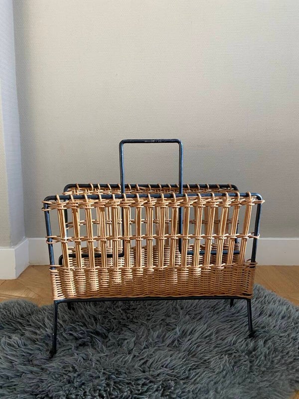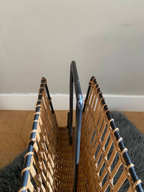 Door de combinatie van materialen is deze lectuurbak in elk interieur toe te passen. Het warme rotan is in een mooi patroon bevestigd aan het stoere, zwarte metaal. De staat van de lectuurbak is erg mooi; het rotan is in zeer goede staat, het metaal heeft hier en daar een plekje, maar niets storends.