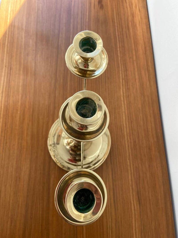 Wow wat een geweldige eye-catcher is deze Deense kandelaar! Prachtig vormgegeven in art nouveau stijl en in bijzonder mooie staat! De kandelaar weegt maar liefst 1,3 kg; dus gemaakt van een zware kwaliteit messing! Een feest op tafel!
