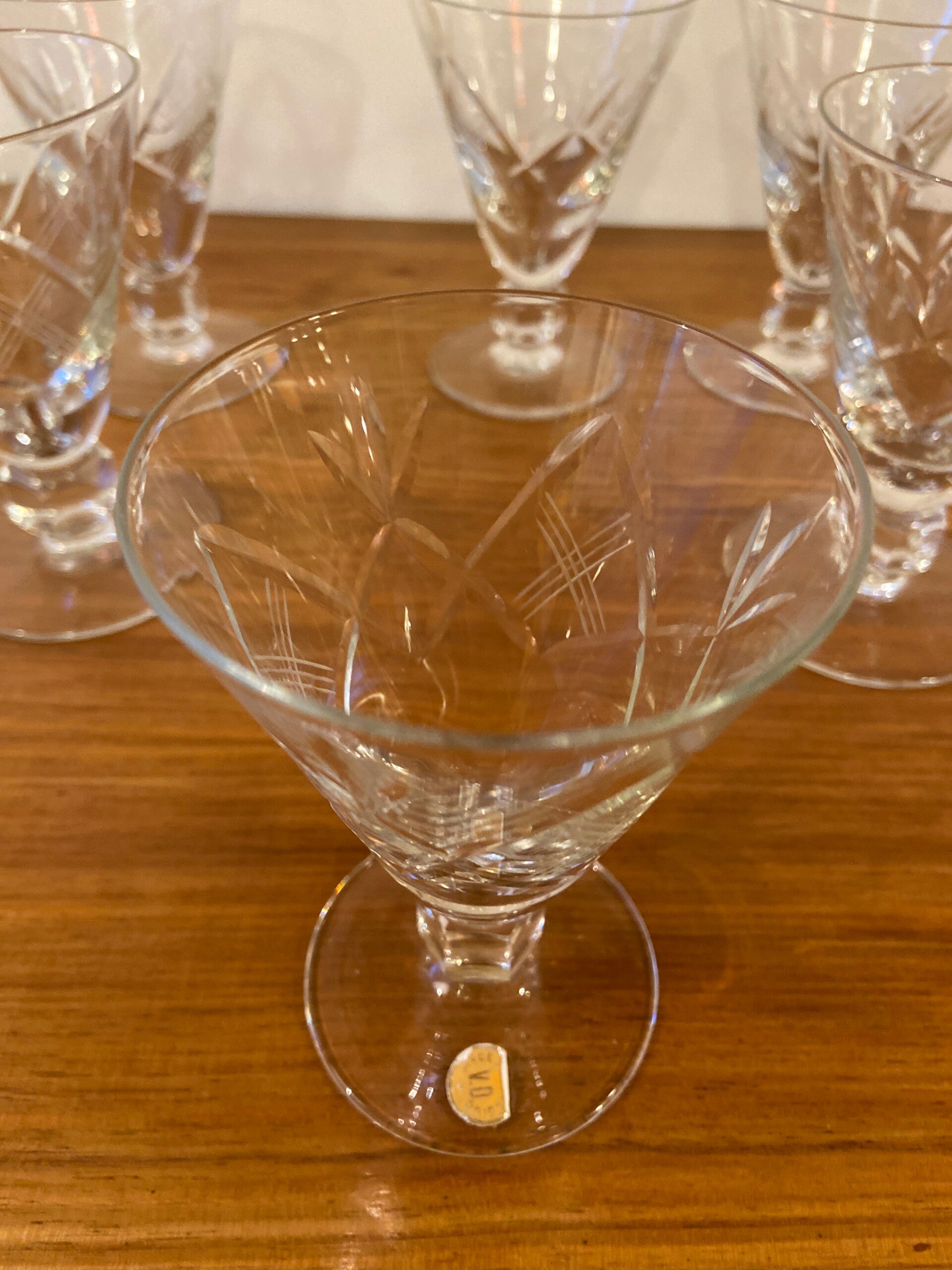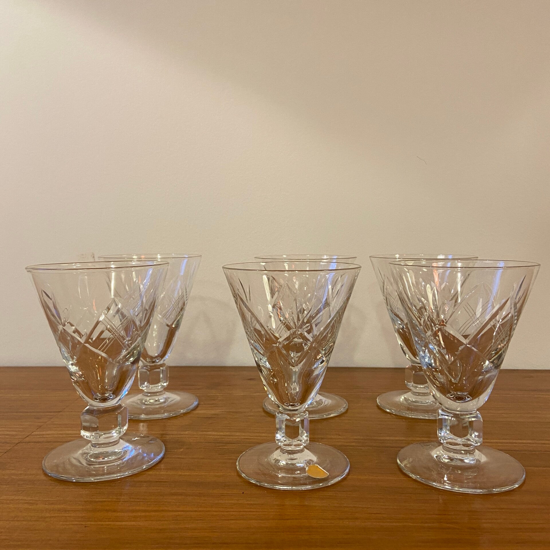 Set van 6 vintage Belgische bewerkte cocktail-/wijnglazen