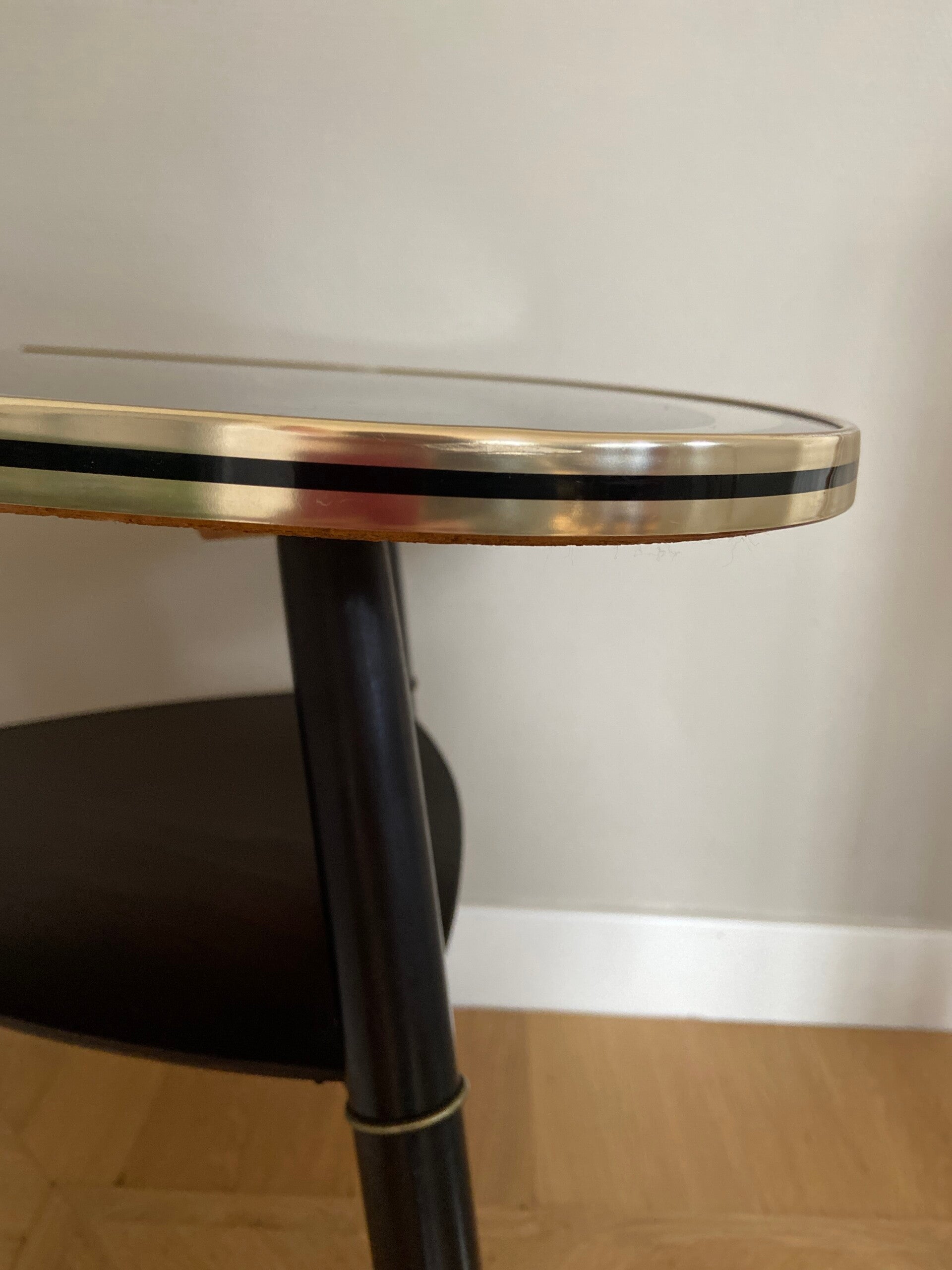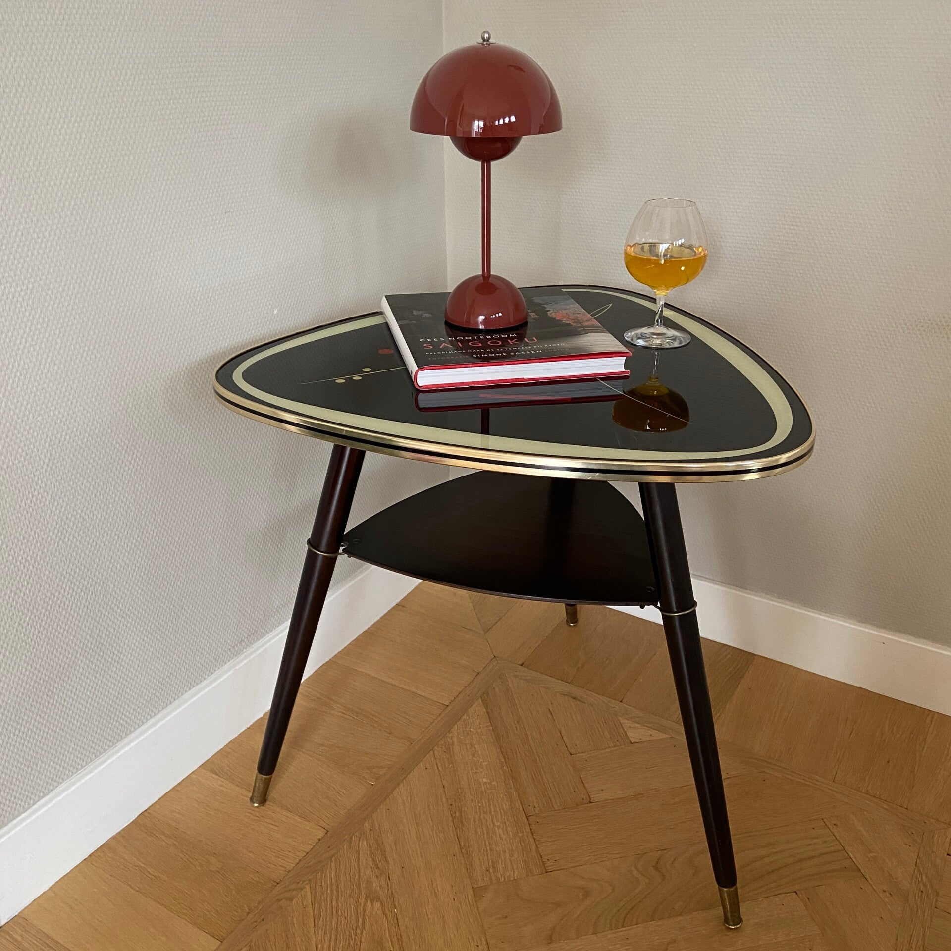 Vintage Koffietafel met zwart gedecoreerd glazen blad