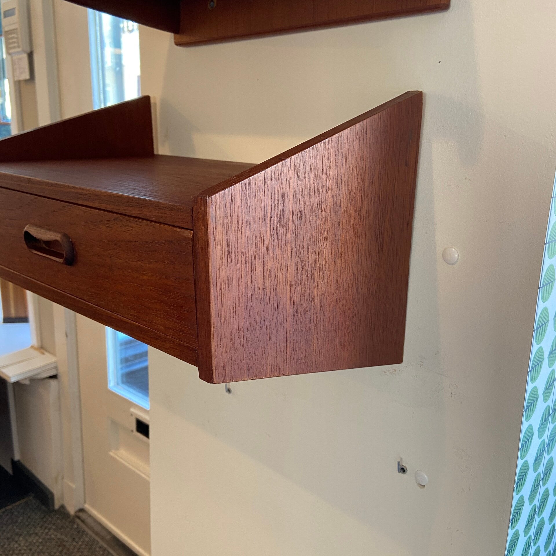 Vintage Deens zwevend hal- of nachtkastje van teakfineer
